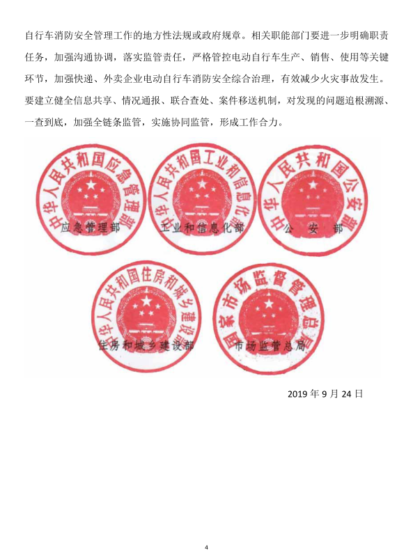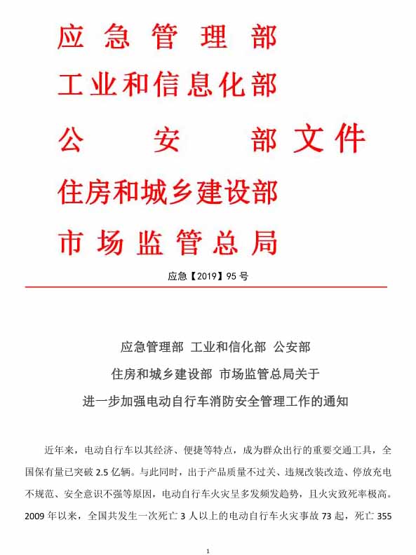 应急部、工信部、公安部、住建部、市场监管总局联合发文:加强电动自行车消防安全管理