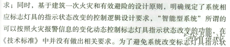 2018年4月10日原公安部消防局印发了《关于印发〈建筑高度大于250米民用建筑防火设计加强性技术要求(试行)〉的通知》,在《通知》的第二十七条明确:“建筑内不应采用可变换方向的疏散指示标志”,在《通知》的条文说明中对该款规定的制定做出了如下解释:“鉴于可变换指示方向的疏散指示标志在我国工程实践中尚存在一定的问题,因此规定超高层建筑内不应采用此类疏散指示标志”。