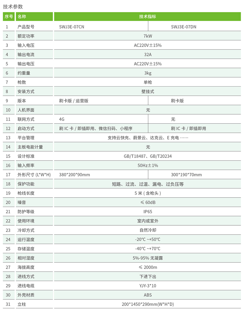该系列交流充电桩适用于私家小区、安置小区、商业写字楼、城市综合体等停车场较长时间慢速充电的场合。此外也适用于新能源汽车 4S 店、车间维修区、新能源汽车道路救援等临时性补电的场合。